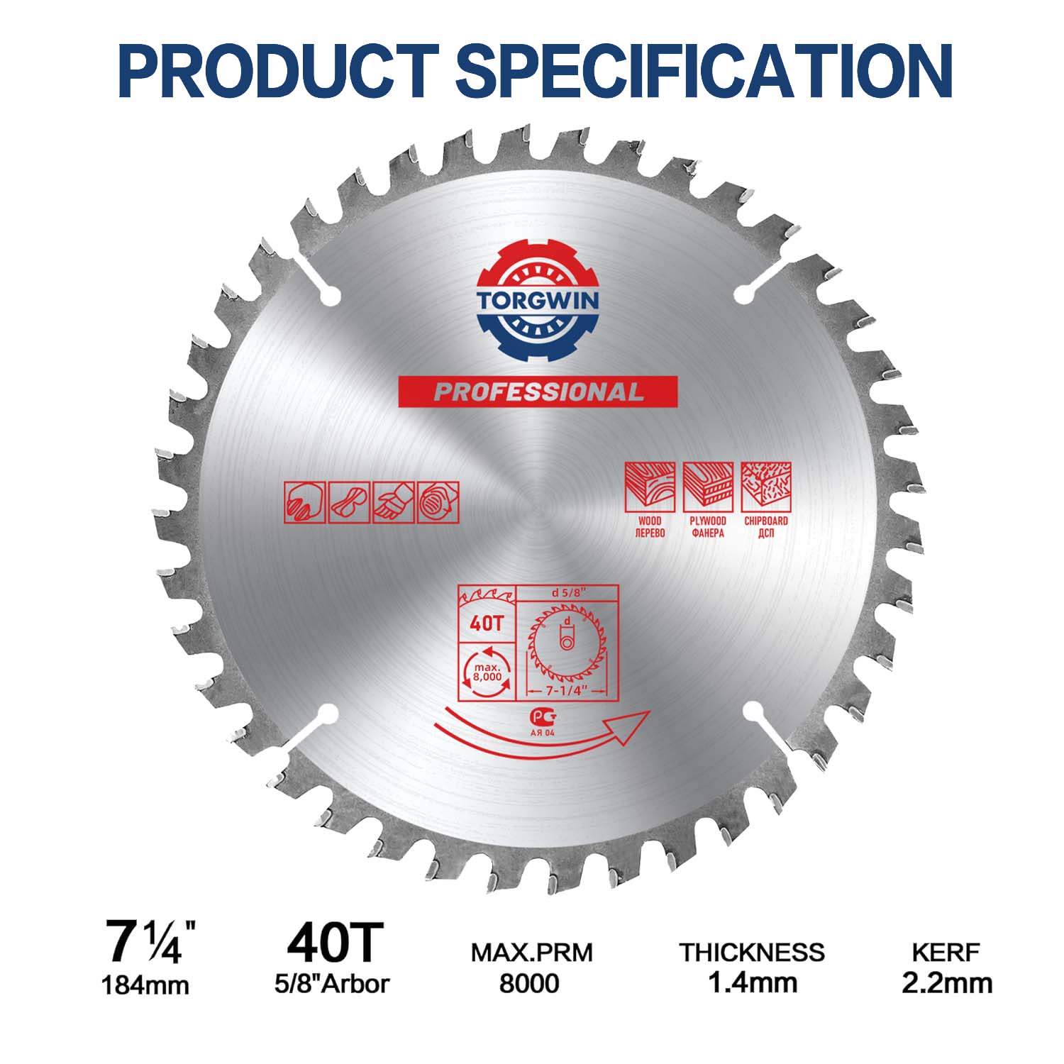 7-1/4 tum 40 tänder karbid tippad cirkulär sågblad