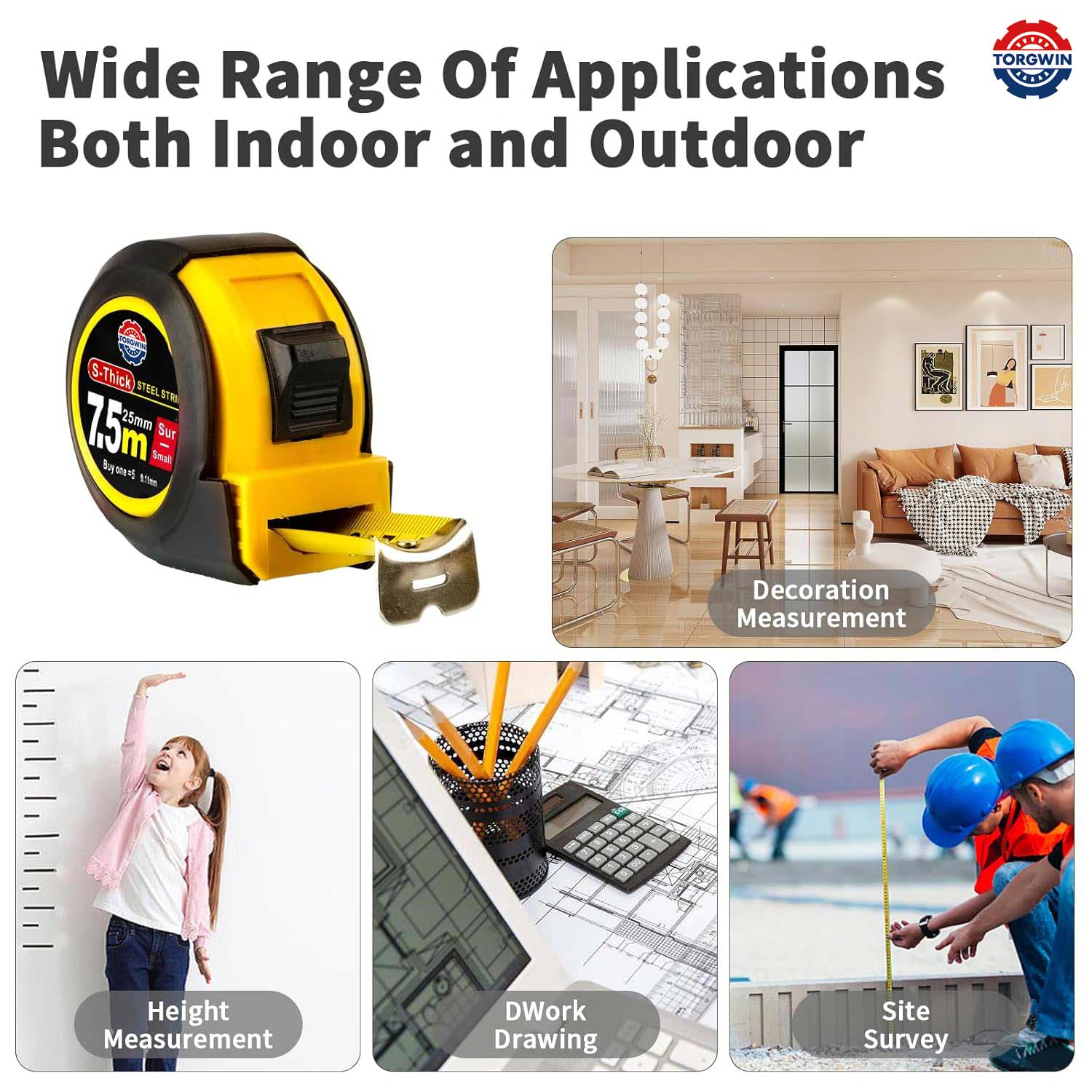 1. Brett utbud av applikationer - inomhus och utomhus:Vårt bandmått är ett mångsidigt verktyg som är lämpligt för olika uppgifter, inklusive: